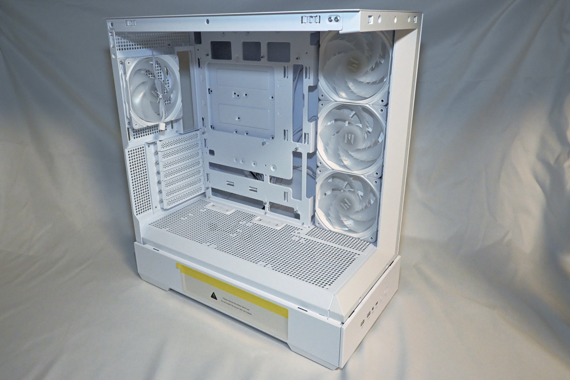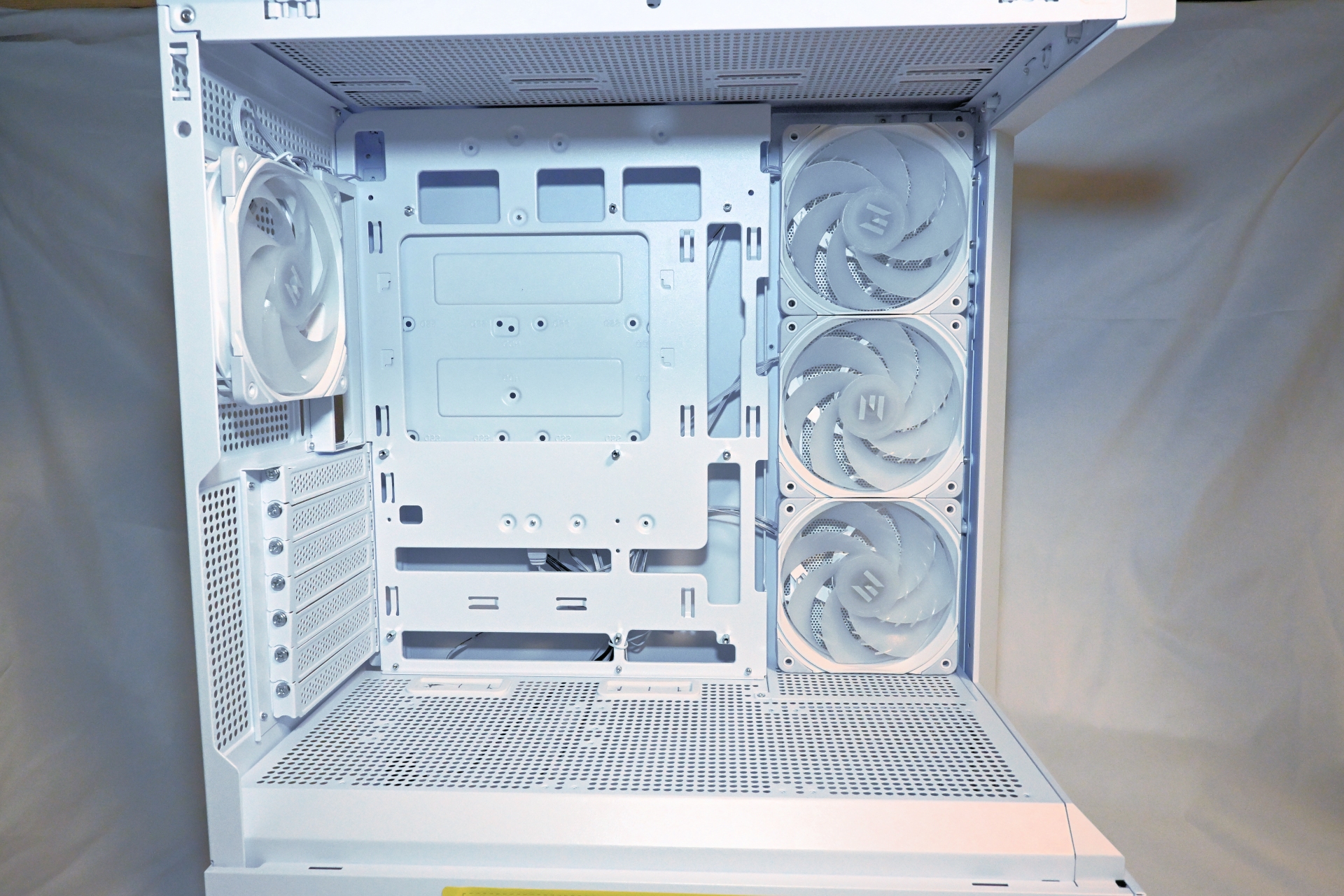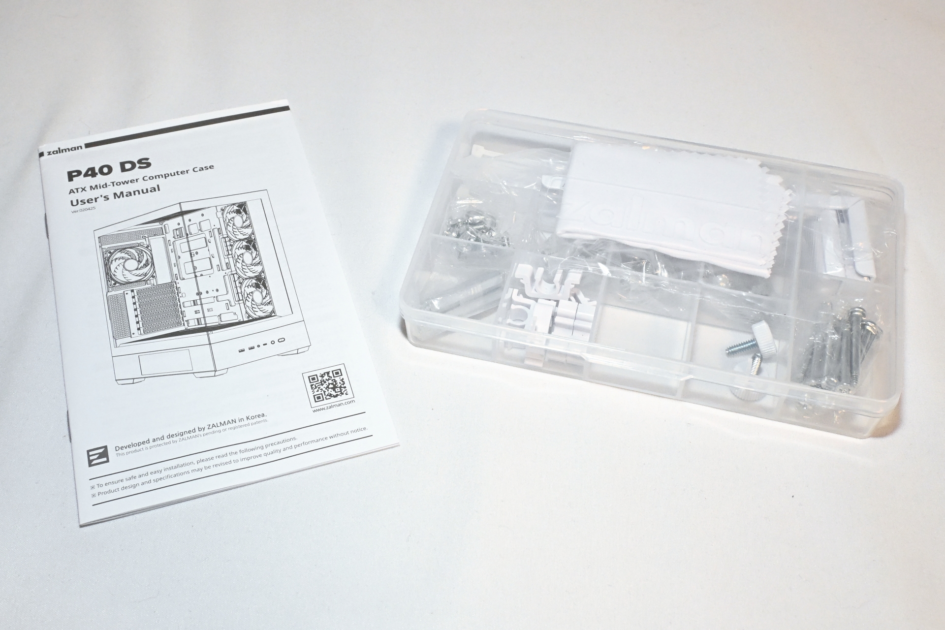 The P40 DS comes well packaged in its own brown cardboard box. Unpacking the box reveals the case in all white with two very large and thick tempered glass panes, one on the left side and one in the front. Both glass panels are further protected with scratch resistant plastic film, which on the side panel also has a sticker showing how to open up the side panel by using the pull tab and pull the panel out about 15 degrees to then be able to lift the side panel out.