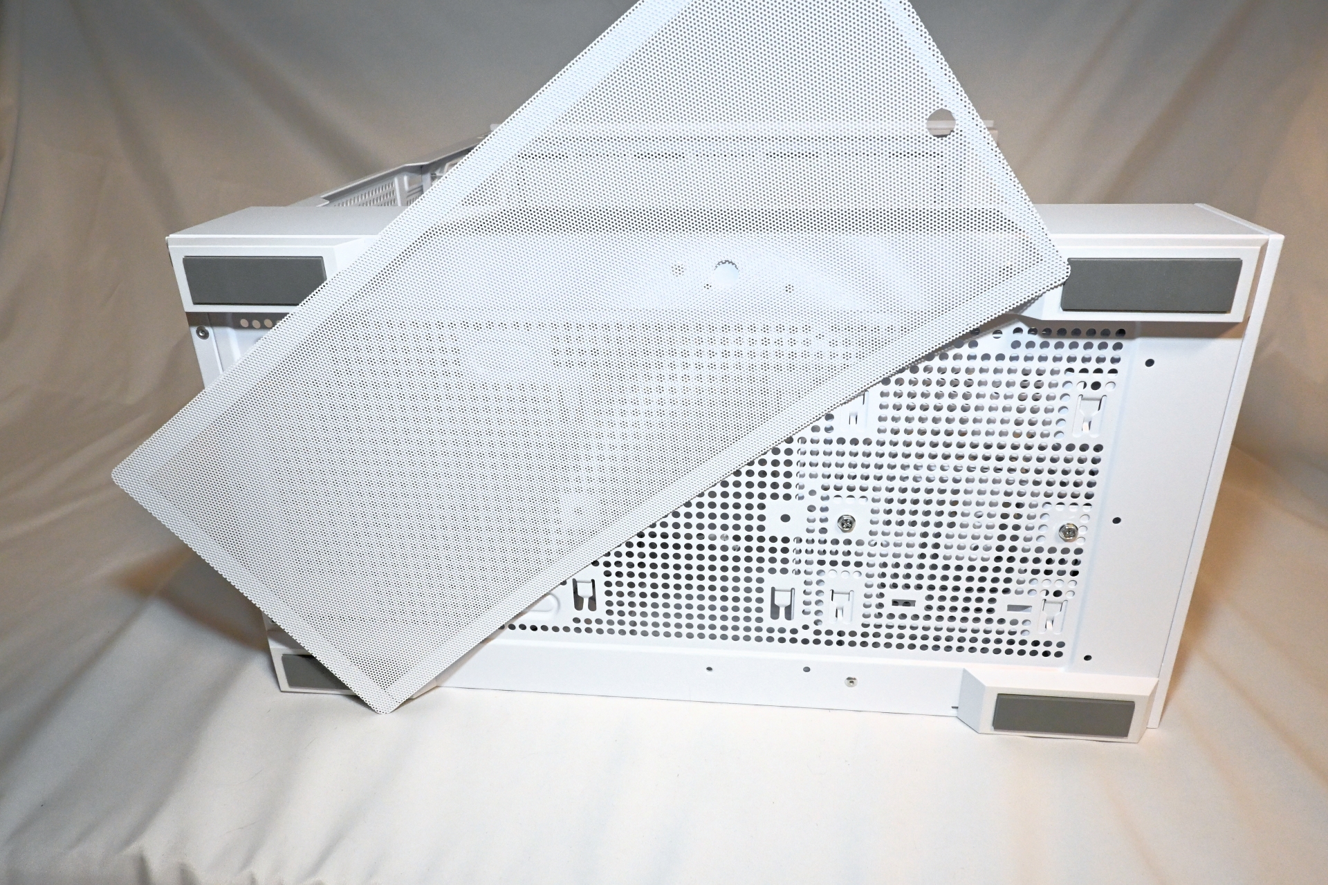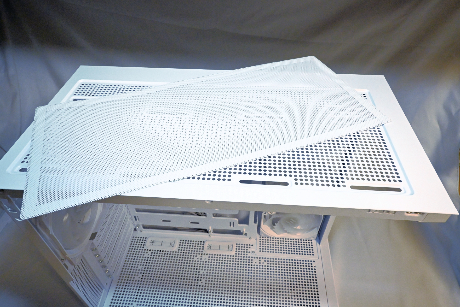 On the top and also on the bottom of the case there are magnetic dust catcher sheets, being magnetic they are very easy to remove and clean.