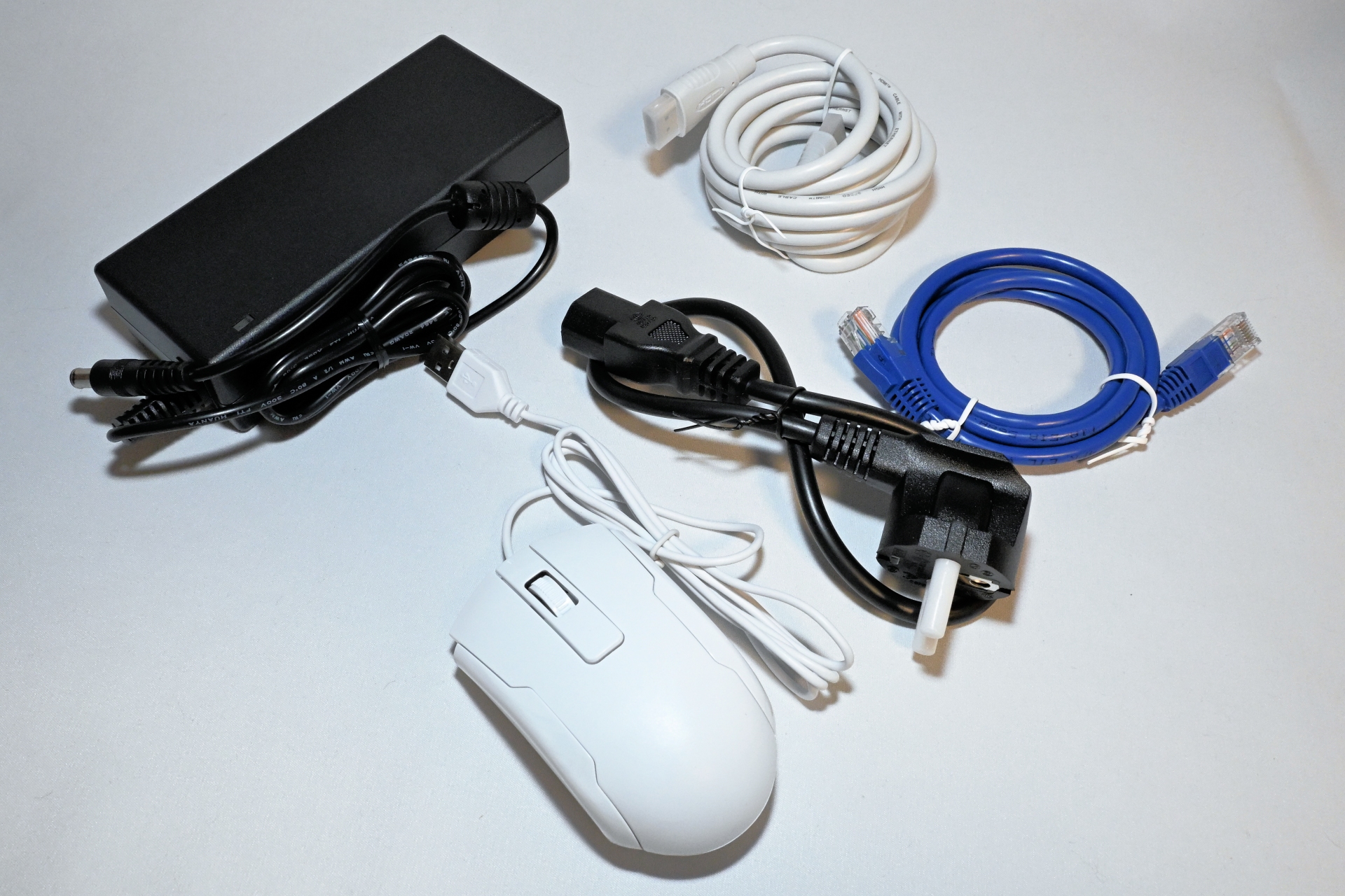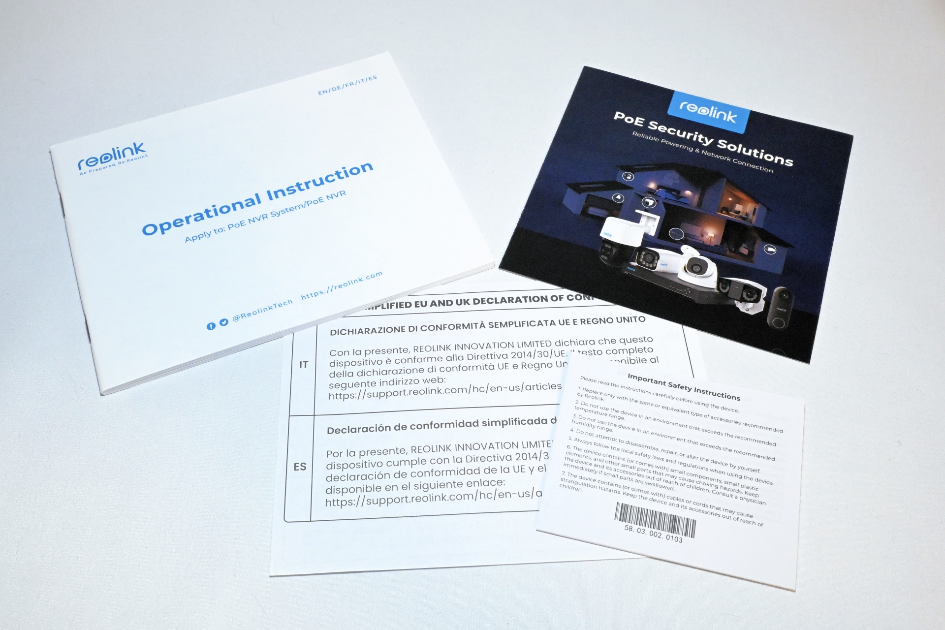 The NVR comes in a rather anonymous brown box with minimal information on it. Opening it up we find operational instructions, declarations, safety instructions and a flyer. On the side of the NVR inside the box is another box which contains the power supply, HDMI cable, network cable and a mouse. Mice are a common thing to get with NVRs as that together with the HDMI cable to a monitor is the absolute easiest way to control an NVR. It is also the most secure as you can skip the exposure to your LAN and possible the Internet by omitting the network cable.