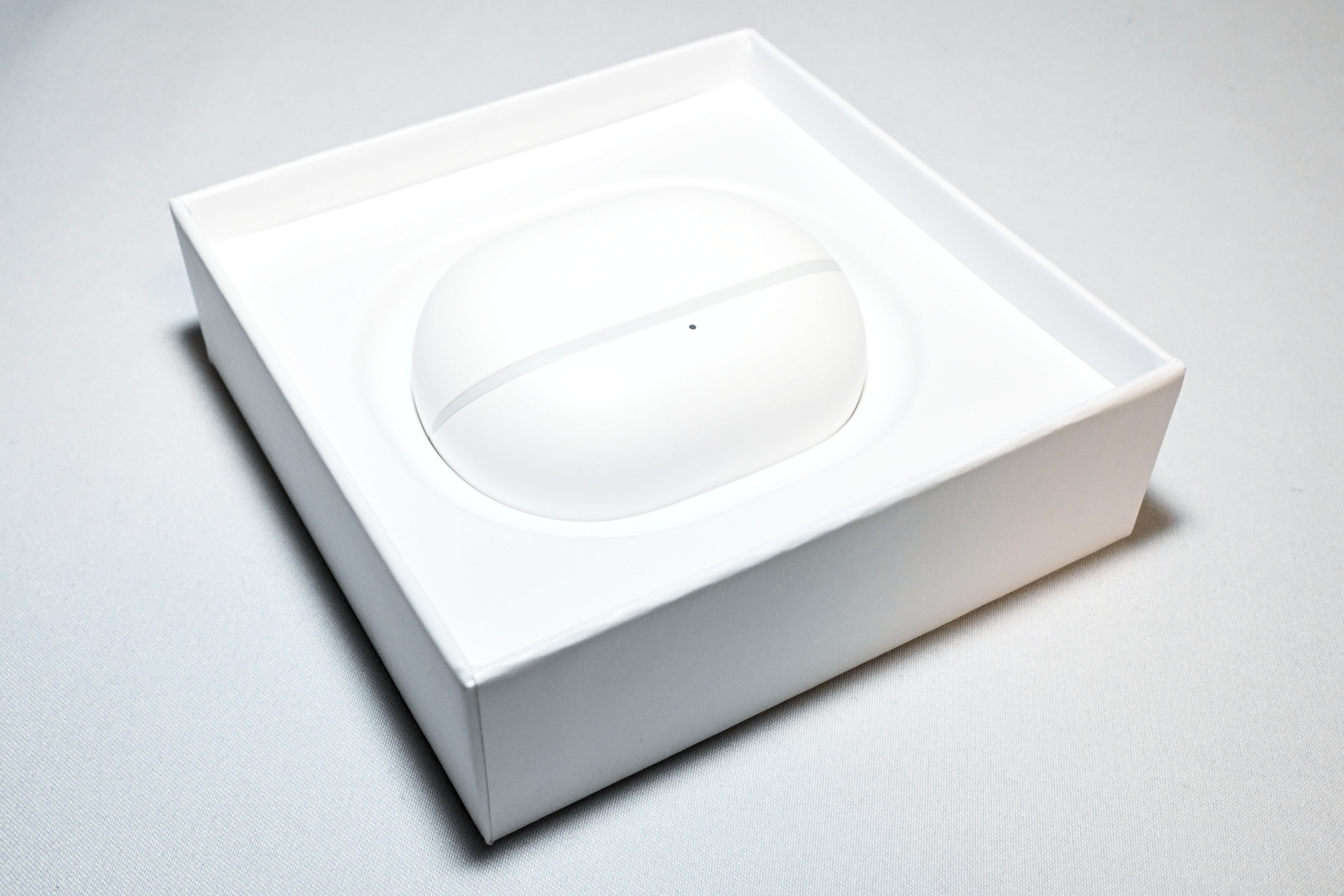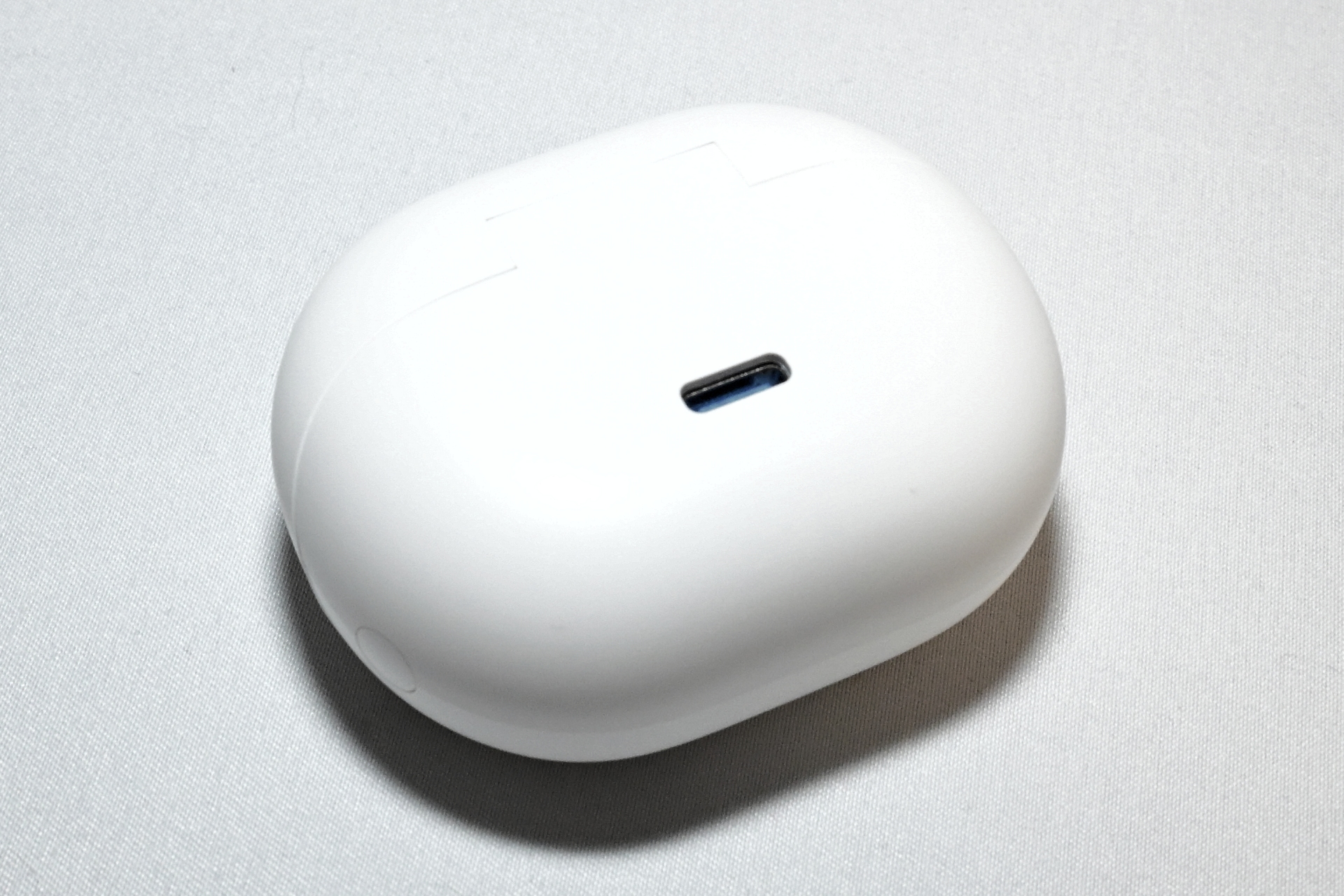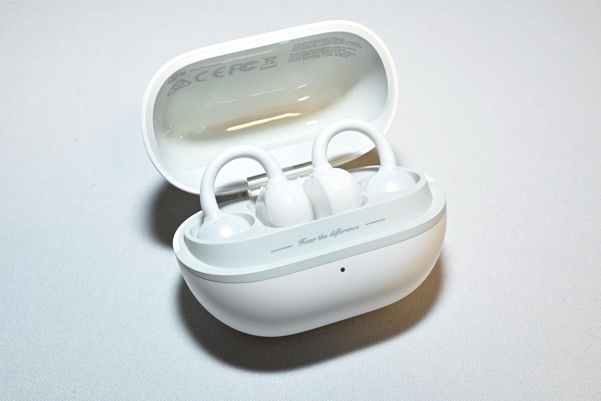 Opening up the box reveals yet again the charging case which has a single RGB led on the front for charging and operational status. USB-C charging port is on the back and we have the reset and pair button on the right side this time. The charging case comes in a matt white design which feels as easy to clean as the Air5 Pro and PearlClip Pro, which is especially important on the white POP Clip as I'm sure the white will more easily get dirty and need more cleaning maintenance.