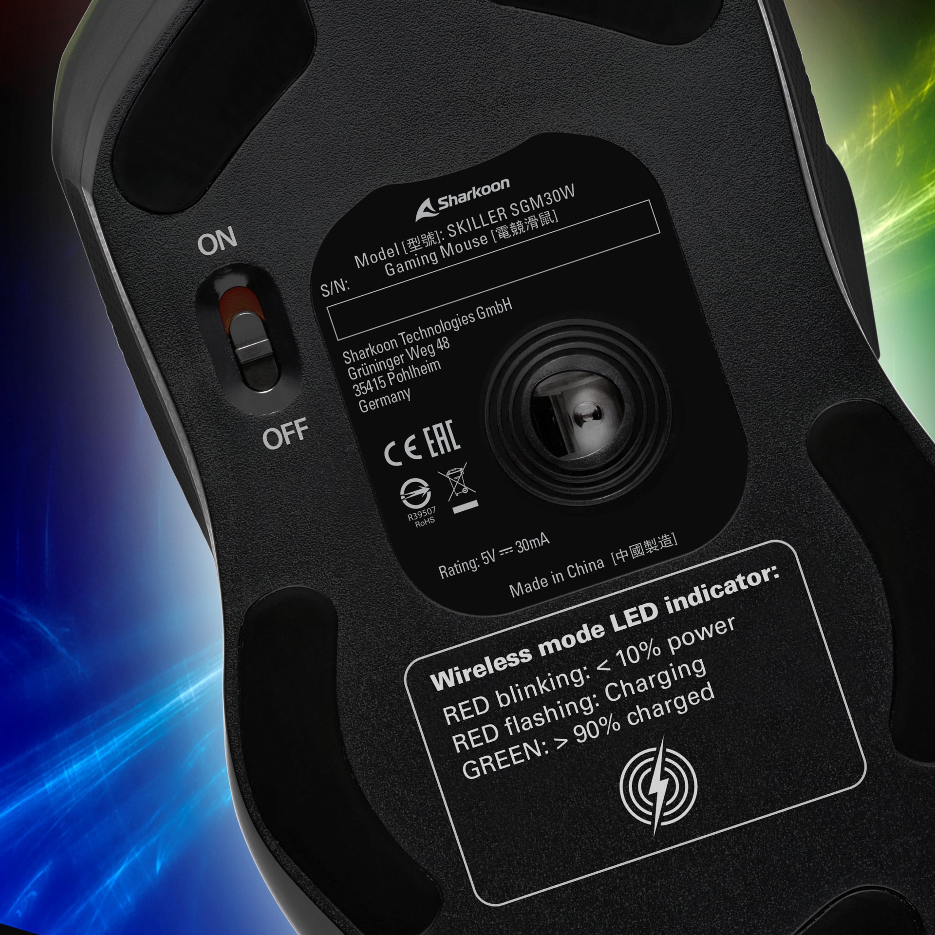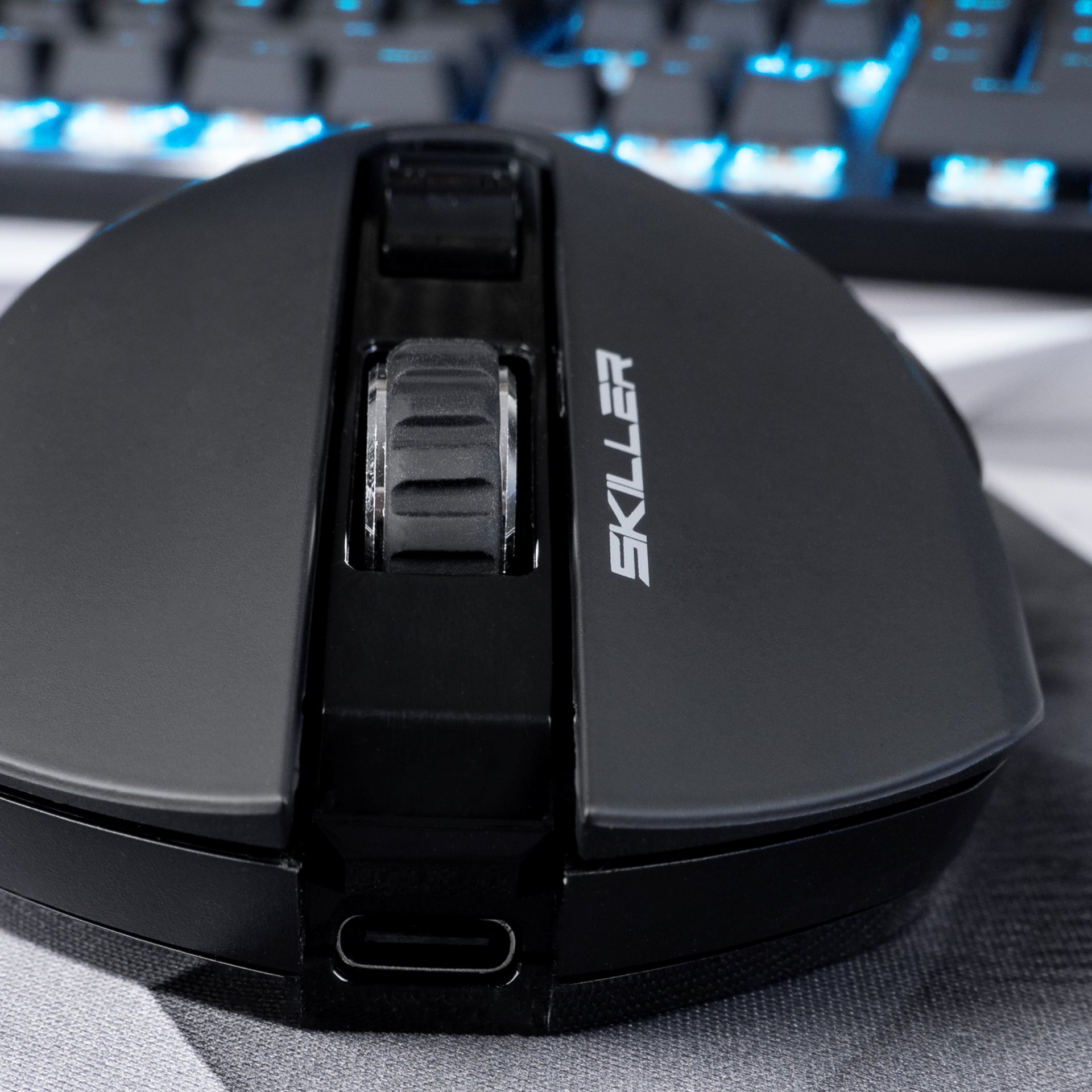 The Skiller SGM30W has a wireless battery life of up to 70 hours and can be recharged as desired, either wirelessly or using the supplied USB-C to USB-A cable.