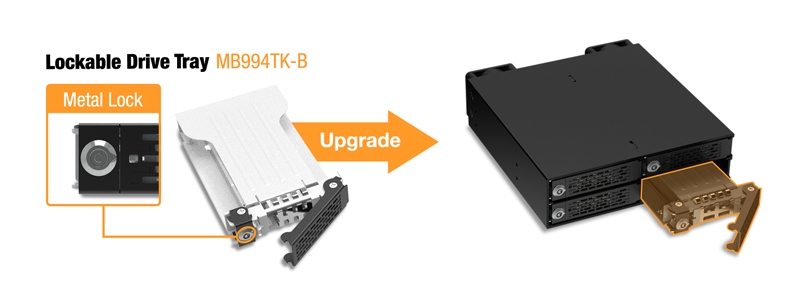 If your application demands added physical security to protect valuable data from theft, you can upgrade with the compatible lockable drive tray MB994TK-B for an instant security boost to your MB699V5P-B. For bulk orders of MB699V5P-B pre-equipped with lockable drive trays, reach out to our sales team at sales01@icydock.com (Minimum Order Quantity applies).