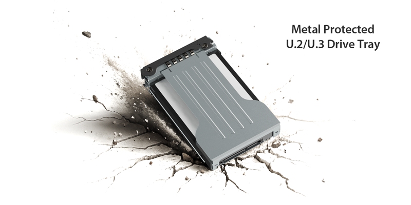 Each removable drive tray includes Emi grounding to protect drives from electrical interference during insertion, ensuring a stable and secure environment for sensitive enterprise-grade NVMe SSDs.