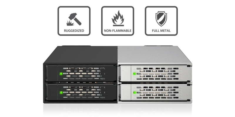 The ToughArmor MB699V5P-B packs next-generation performance and rugged durability into a compact mobile rack solution, integrating up to four enterprise U.2/U.3 NVMe SSDs (7-15mm height) into a single external 5.25" optical drive bay. With PCIe 5.0 support delivering transfer speeds of up to 128Gbps per drive through dual Mcio 8i (Sff-ta-1016) connectors, a redesigned airflow-optimized enclosure, and a lightweight aluminum housing, the MB699V5P-B is built for mission-critical applications in servers, workstations, and compact systems where maximum speed, security, and reliability are essential.