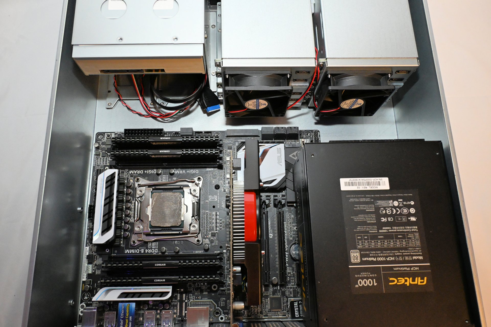 Next, it's time to install our test system, which ties into our article series about building a server using older hardware you might already have in your closet or attic. For this reason, we are not installing brand-new components, but instead a roughly ten-year-old system based on an Intel Core i7-5820K paired with an Asus X99-A motherboard.