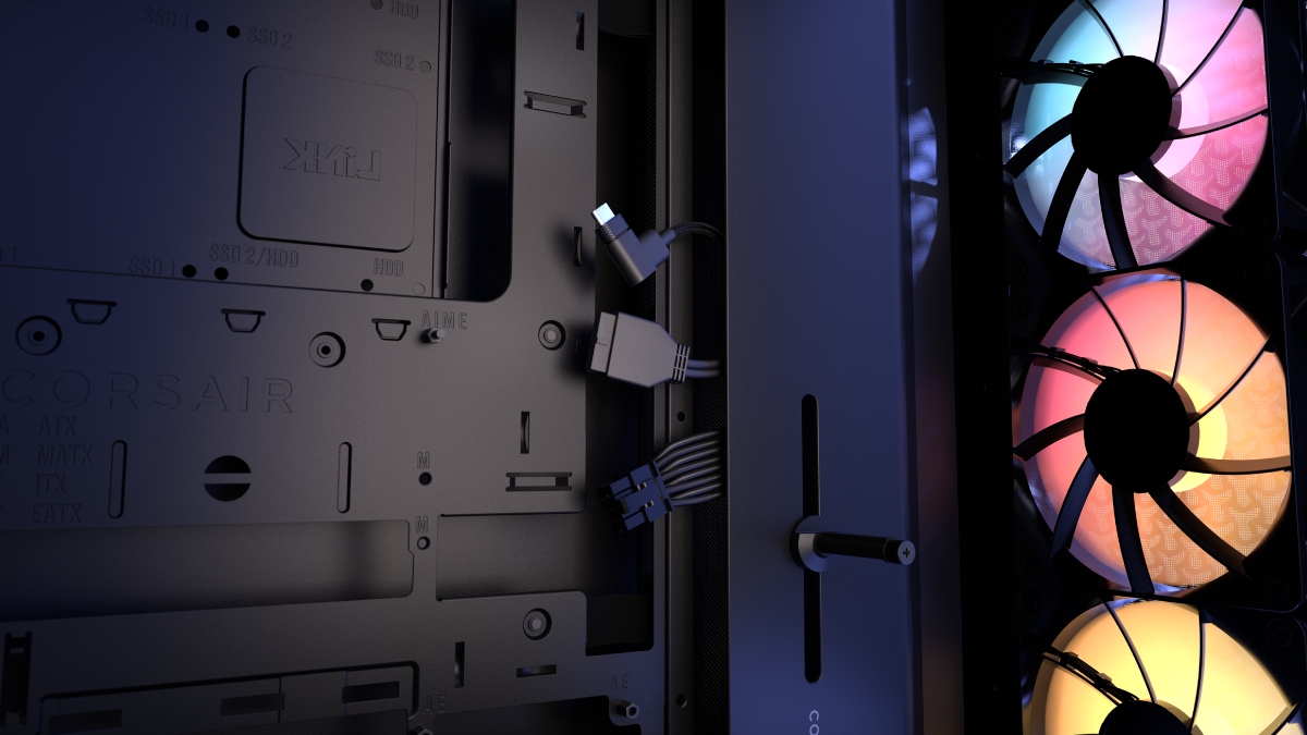 Improved AirflowCooling performance has been significantly upgraded with this new version of the Frame 4000D, as it now includes four RS120 PWM ARGB fans for exceptional airflow with simple motherboard RGB control right out of the box. Three fans provide strong intake airflow at the front, while a fourth fan exhausts heat efficiently from the rear. A new bottom fan mount adds flexibility, and a full-length bottom air filter simplifies maintenance.