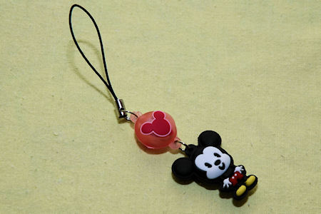 Just above our Mickey Mouse cutie we have a small round pink piece and inside this there is some high-tech gear. If you remove the plastic strap from the battery inside, which is very easy, our cutie starts to blink whenever it gets touched by the GSM cell phone signals.