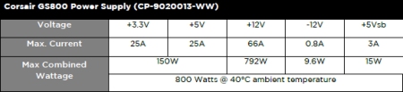 Alright so what else does this power supply offer us? Well, it surely offers quite some power at 800W with the following specifications.
