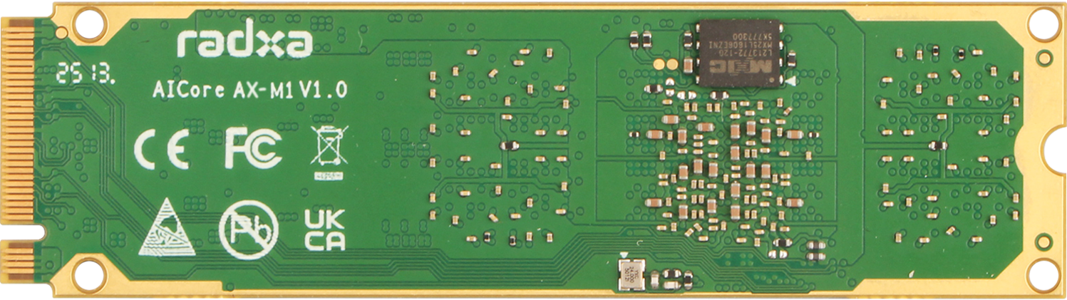 Radxa AICore Ax-M1 is a high-performance M.2 acceleration module based on Axera's AX8850 SoC, featuring high computing power and energy efficiency ratio, specifically designed for edge Ai computing and Ai inference applications.
