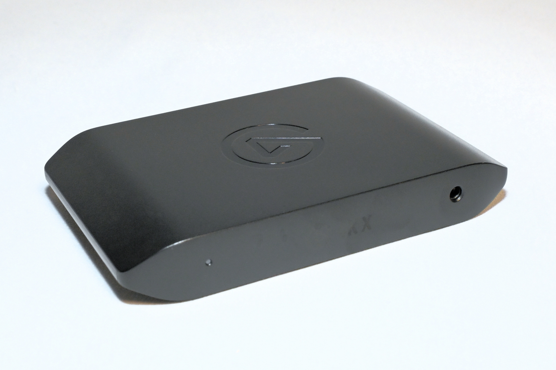 The product itself, the 4K X is a small black box with well designed and stylish lines and is satisfyingly symmetrical. We find HDMI IN and OUT connectors as well as the USB-C connector in between on the back. In the front we find a small status LED, the 4K X logo as well as an analog audio connector. In terms of hardware, that's all there is to it.