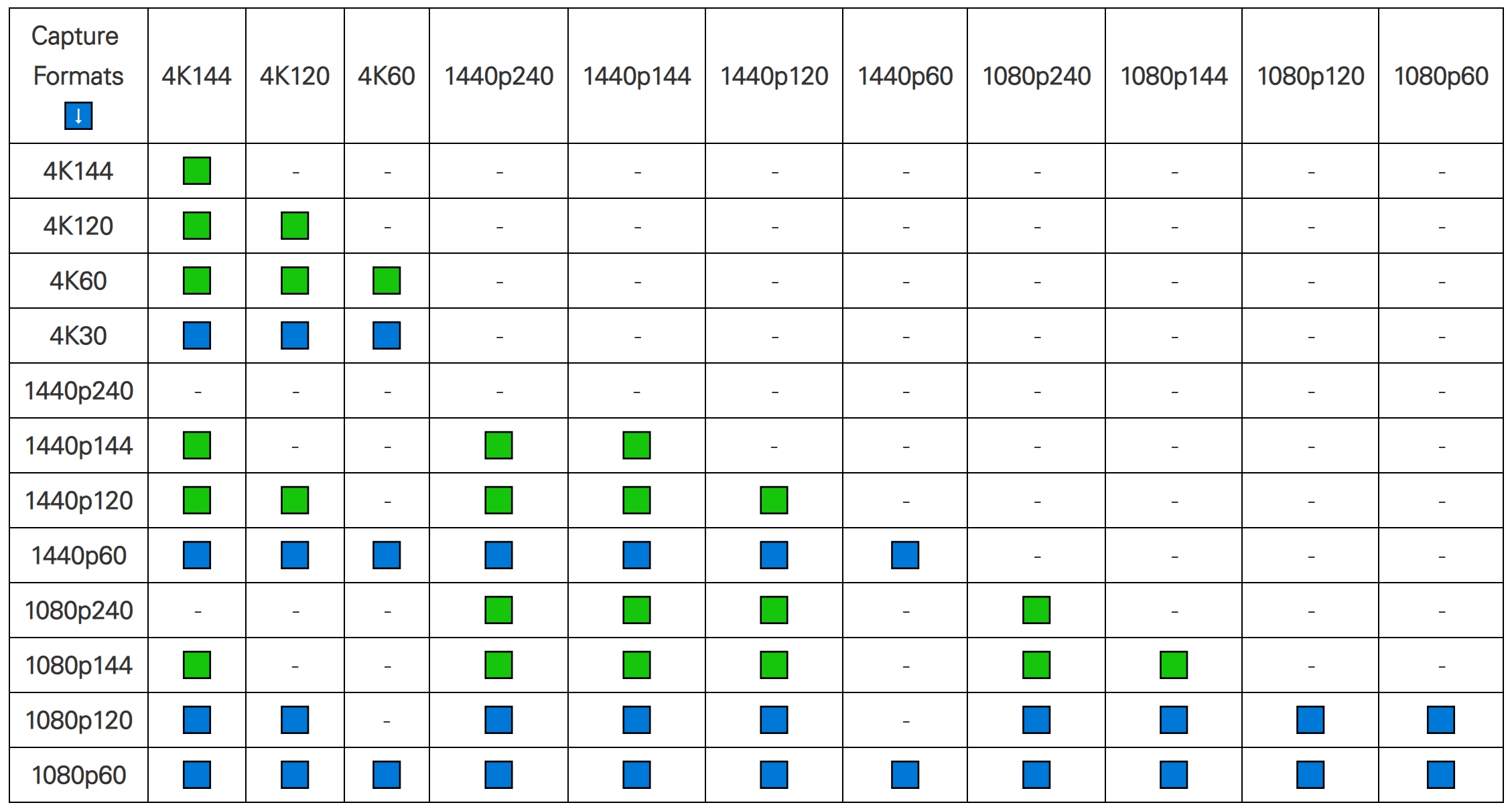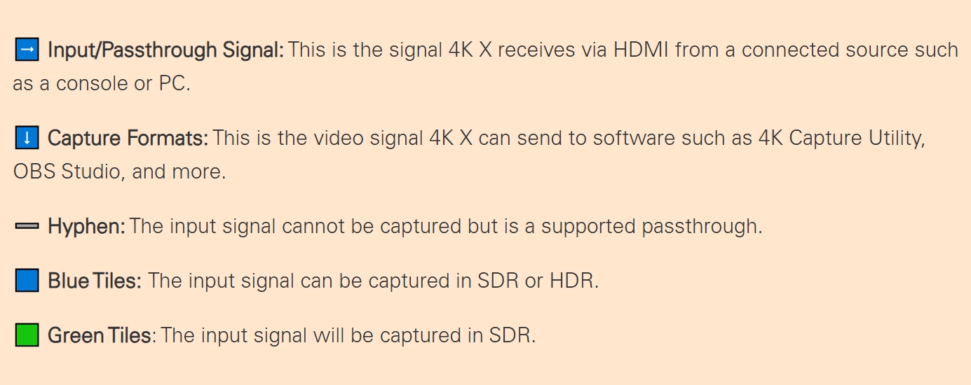The 4K X from Elgato can handle quite a lot of different resolutions, both in for recording and out to a monitor or TV screen. The following table shows which resolutions can both be recorded in SDR or HDR, as well as which resolutions that can be pass through to a monitor or TV.