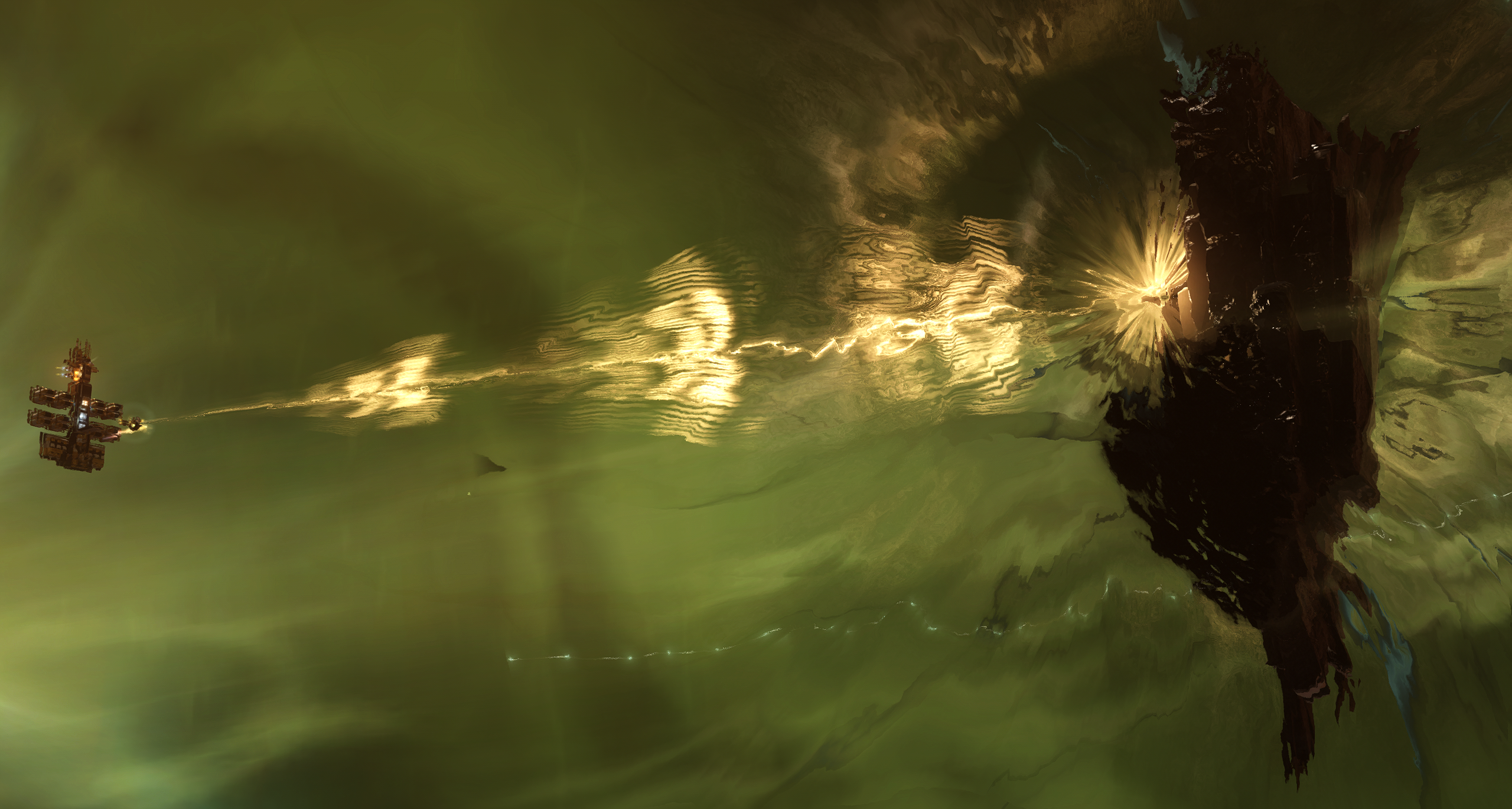 A failed experiment on the enigmatic Drifter Gates has destabilized spacetime, causing Hyperspace Fractures to appear across New Eden. These short-lived anomalies reveal Phased Asteroids rich in a volatile new resource, Prismaticite, an erratic ore that reprocesses into random minerals in unpredictable quantities. Outer Ring Excavations (Ore) engineers have unveiled Phase Anchor technology, a deployable system that stabilizes fractured asteroids for coordinated mining.
